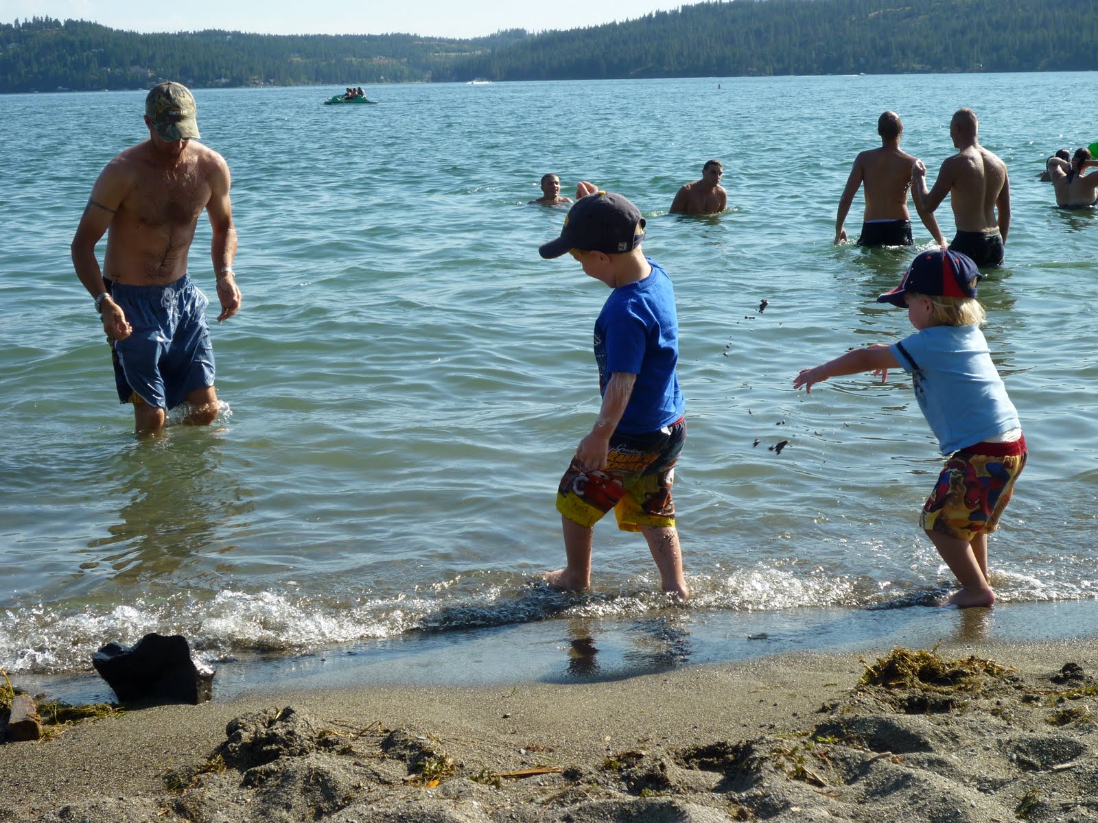 The end to our crazy summer brought a fun little mini-vacation to Coure D' Alene and surrounding area. We played in the water A LOT since the temps were in the 100's. Coure D' Alene Lake had Kaleb convinced that it was an ocean. They loved the sand and water and sun and fun. We went to Silverwood Theme Park and played at the splash park all afternoon and then finished it off with a few kiddie rides. It was wonderful to get away for some fun - especially after having gone through a marathon summer of transition. We let the boys pick out a toy at Toys R Us and they were so impressed and overwhelmed with the experience. They got it narrowed down finally after a lot of time in there and both ended up picking a remote controlled excavator.
